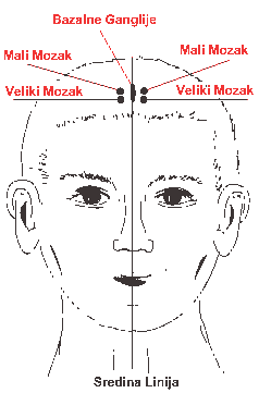 YNSA „mozdane“ tacke u Yin poziciji. Tacka „bazalne ganglije“ lezi uzduzno izmedu tacaka „mali i veliki mozak“ i prelazi jos malo prema nazad preko ostalih mozdanih tacaka.